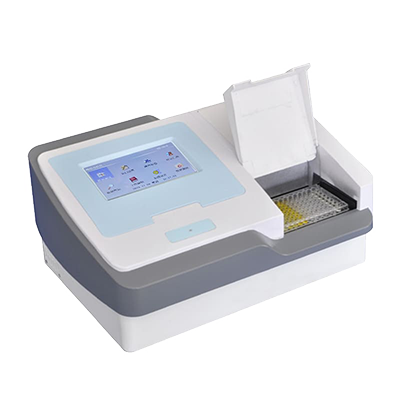 全自动酶标仪内置嵌入式系统,无需外接电脑即可操作、存储、打印;2. 全屏显示96孔整板数据, 直观的可视化布板操作界面3. 便捷的触摸屏输入,另可选配外接鼠标和键盘4. 测量模式:单波长检测,双波长检测,两点法,动力学法,酶抑制率,终点法、速率法。5. 可选择吸光度、Cut-Off定性计算、单点定标